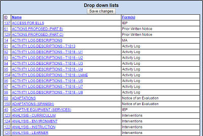 Most drop down boxes in SpEd Forms can be edited. Click on any of the field names listed to see what is displayed in that particular drop down box.