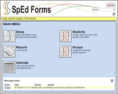 3. Click “Enter” and the SpEd Forms main menu will appear.