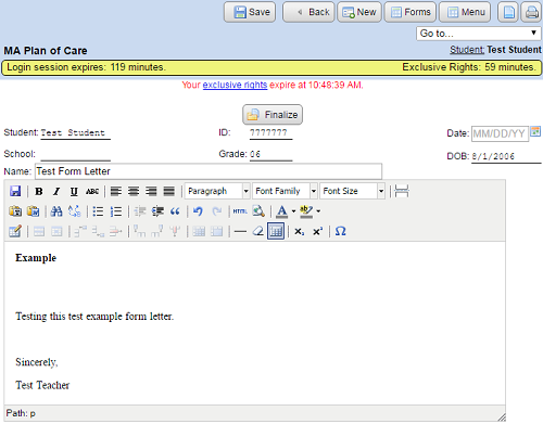 • The body of the form letter works the same as an ER section in Design mode. Be sure to follow the copy and paste guidelines.
