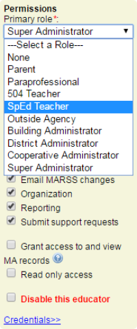 • Read only SpEd (Can view only, not edit any SpEd Forms)