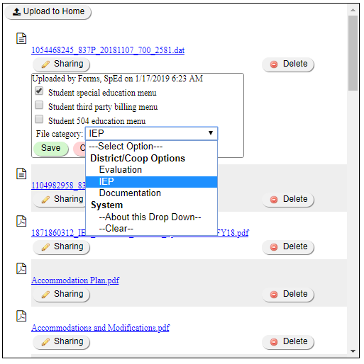 3. Set the file's category with the “File category” drop down.