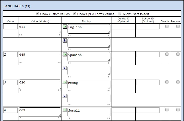 The language drop down boxes in SpEd Forms can be edited.