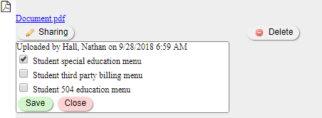 9. Check the “Student special education menu” check box if you would like this file to be accessible from the Form Menu of a student record.