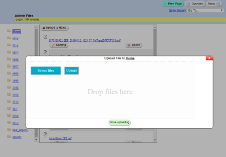 2. On the Files page, click the “Upload to Home” button at the top of the page. You can upload this to the 'Home' folder, or a specific district's corresponding numbered folder.