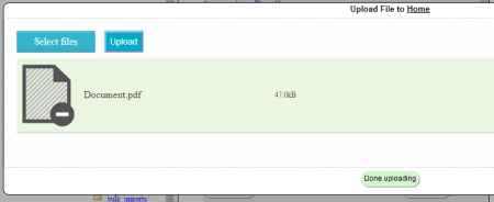 6. Wait for the file to be uploaded. After it is uploaded, it will have a green background. Click “Done uploading”.