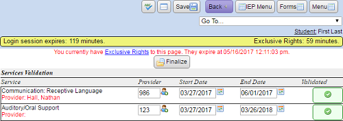 A copy of the IEP will be put in the “History” tab. From the Forms Menu, click on the “History” tab to view forms that have been put into history for that student.