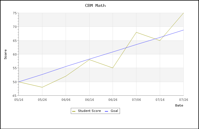 When enough “Results” have been entered for a measure, a graph can be created to get a detailed visual representation of the student's progress through the goal or objective.