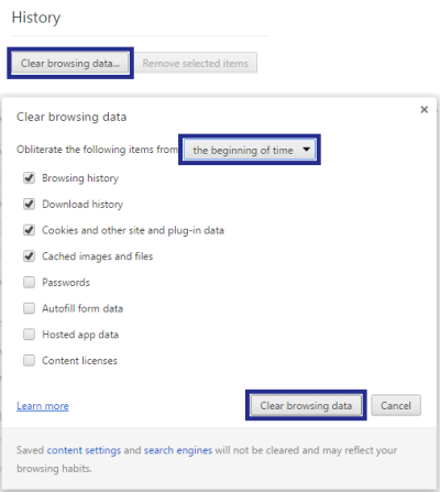5. Click Clear browsing data button.