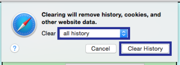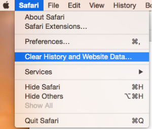1. From the Safari browser, pull down the 'Safari' menu and choose 'Clear History and Website Data'.