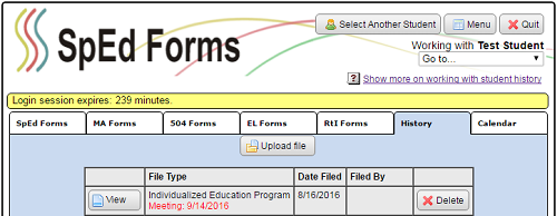 3. From the Forms Menu, click on the “History” tab to view forms that have been put into history for that student.