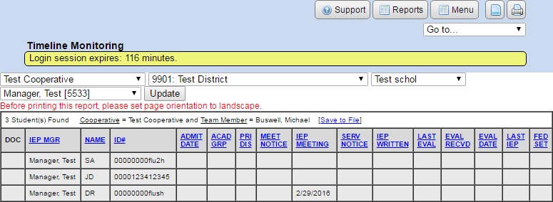 Most of the administrative reports that SpEd Forms offers can be printed to any printer.