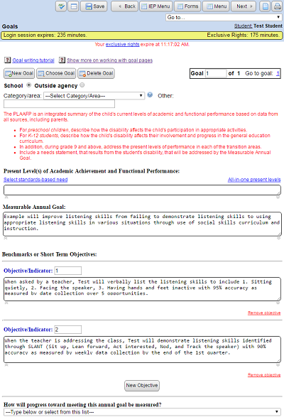 • Always remember to click the “Save” button or the text of your goals and objectives will be lost.