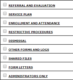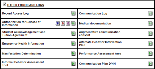 • Once you've expanded a section to see the list of forms, that section will stay expanded anytime you come back to that student's form menu, until a user un-checks the section heading.