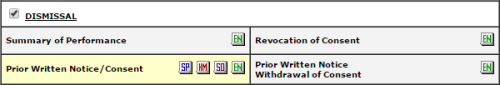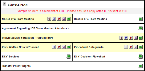 • At the top of the Forms Menu, choose which Service Plan you are working on for this student. The forms listed will be dependent on the selection made here.