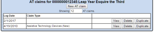 To View, Delete or Duplicate an Existing AT Claim: