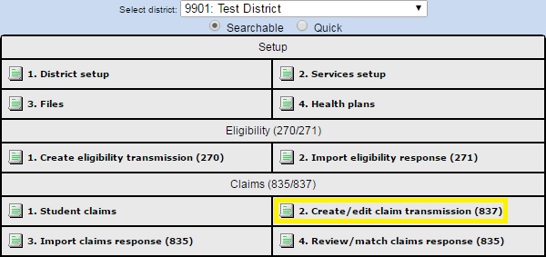 Click “Create/edit claim transmission (837)”.