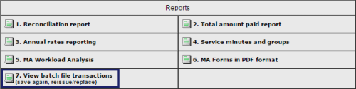 1. Navigate to the MA reports menu, click on “View batch file transactions”.