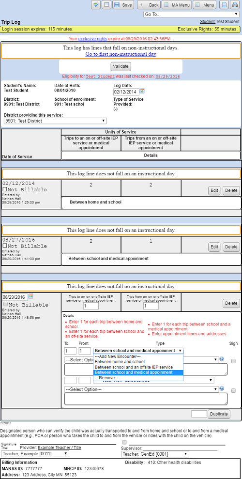 8. Select the Type of trip from the list box.