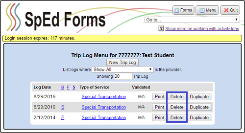 View or delete existing trip logs: