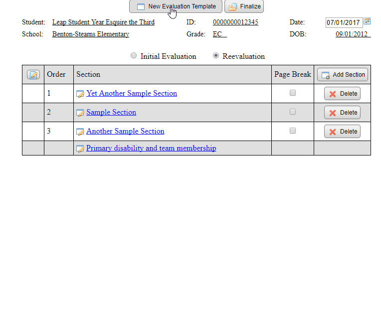 9. The template will be automatically entered into the evaluation report, overwritting the old template, and you will be taken to the evaluation report menu.