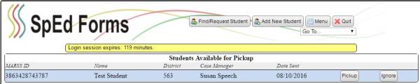 2. Student data that is available for pickup will be shown at the top of your list of students. Click the “Pickup” button.
