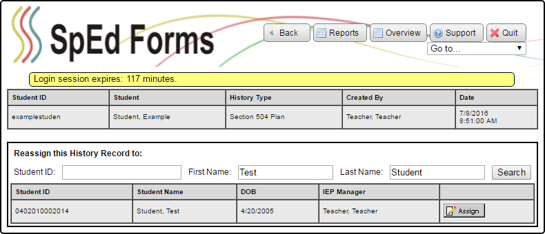 Reassigning Student History to Another Student