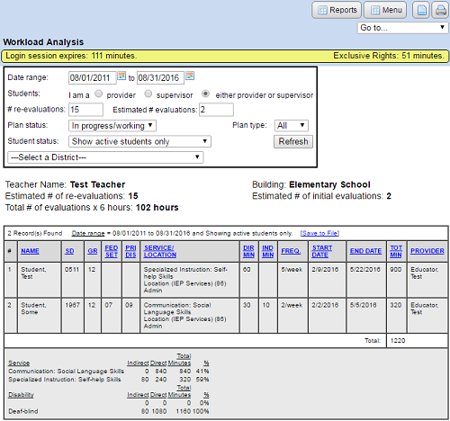 The “Teacher workload analysis report” will give you the following results: