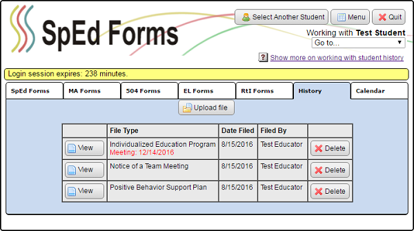 6. To delete a history page or form, click on the “Delete” button next the name of the form you want to delete.