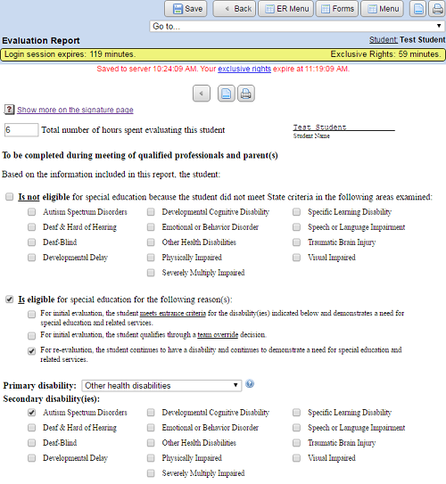 • If the District has chosen “Remove “Secondary Disability” language from Signature page” in the Administrative Preferences, only a Primary Disability selection will be available.