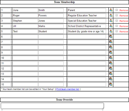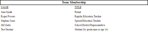 • If the district has chosen to enable the Administrative Preference to “Show team member signatures for all evaluation reports (“Team Signature Page”), names with signature lines will be printed as shown below.