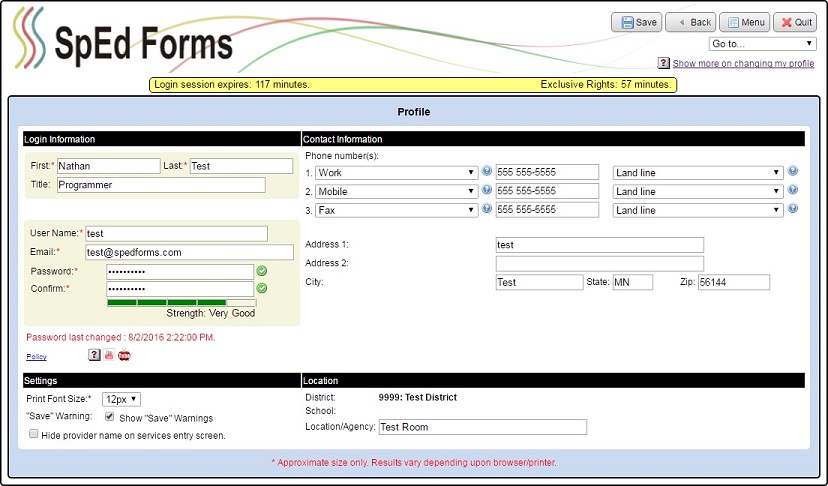 Your user profile is initially set-up by the SpEd Forms administrator for your district. You can change some of this profile information or add information that the administrator did not enter.