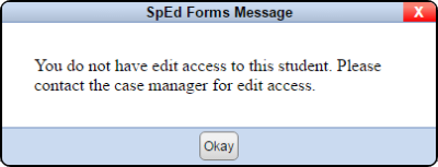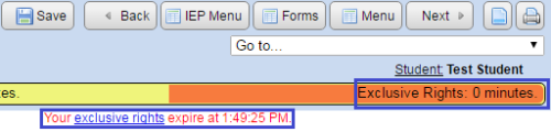 New to SpEd Forms is a live checking of exclusive rights. Rights will be checked periodically on any page currently open, and a warning will appear when exclusive rights are lost for that page.
